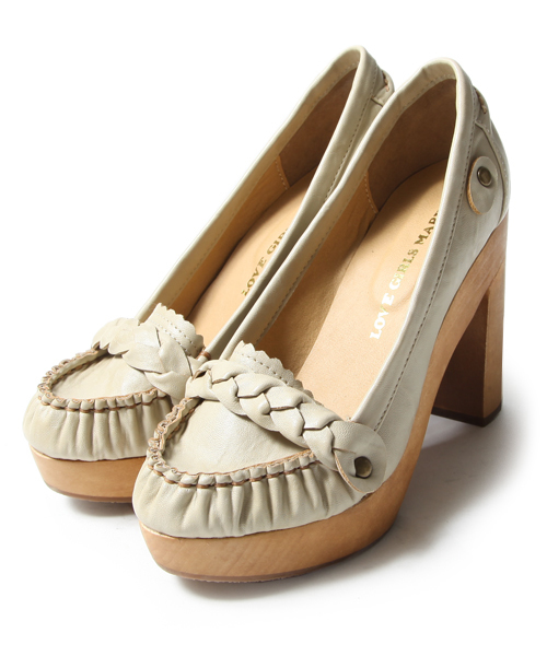 コロンとしたシルエットがかわいい、モカシンパンプスです。 前に厚みのあるプラットフォーム型は、この春トレンドセッターも大注目!! その中でもモカシンタイプはプレッピースタイルにも、フェミニンスタイルにも 取り入れやすく、春コーデにはマストなアイテムです。 ヒールは10cmと高めにみえますが、前に厚みがあるのでとっても歩きやすい☆ WOODで作ったヒールもこだわりPOINTです!! プラットフォームパンプスにはアンクルソックスやタイハイを合わせるのが 春のおススメスタイリング♪ ※画像の商品はサンプルです。