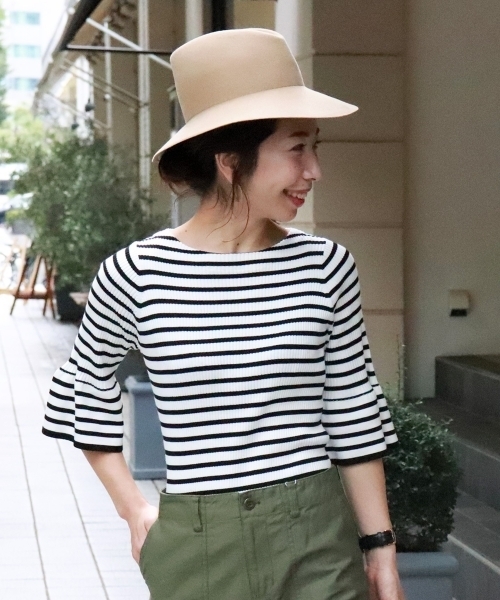 ひらりと広がるフレアーなスリーブシルエットが目を惹く、大人可愛い要素をプラスしてくれるプルオーバー♪ 伸びやかなワイドリブ生地で仕立てられていることで、程よくボディーラインにフィットします◎ やや短めの着丈なので、トレンドのワイドパンツやロングボトムと合わせてもメリハリのあるスタイリングにまとまります。