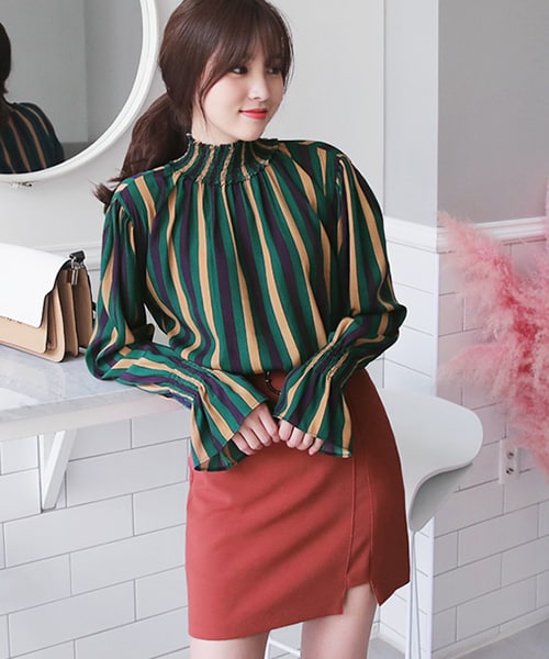 伸縮性ないポリエステル100%素材で製作され‘独特な配色’で存在感を与えるブラウスです。 華やかながらもトーンダウンをさせたモダンな雰囲気が魅力* ※WEARに記載してある金額と、DHOLIC通販サイトに記載してある金額にシステム都合上、稀に誤差が生じます。正しい金額はDHOLIC通販サイトに記載された金額です。