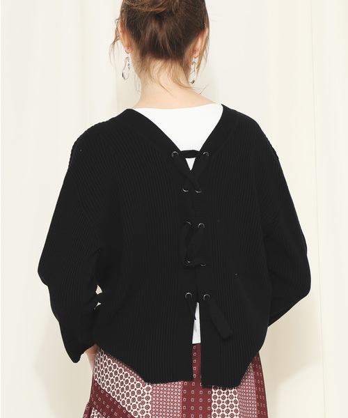 【NINE(ナイン)】 2WAYで着れる!バックスタイルが決まる!!思わず振り向くバックシャンニット。 ナインのレースアップニット。 前から見ると、シンプルですこし広めなクルーネックニットですが、 背中側に編み上げデザインが入った印象的な一枚。 レースアップ部分に取り付けられたメタルのハトメもアクセント。 フロントの裾からバックにかけて緩くアーチがかかっているので 裾をアウトにして着て頂くとバランスよく決まります。 大きめに開いたバック部分は一枚でヘルシーに着て頂くのはもちろん、 タンクトップやタートルのカットソー等を合わせてレイヤードをお楽しみいただくのがおすすめです。 トレンドのワイドパンツと合わせて頂いたり、トレンドのタフタスカートとも相性抜群です。 【NINE(ナイン)】 トレンドを取り入れながら自分のスタイルを持つ、自由におしゃれを楽しむ都会的な女性。純粋さ、潔さ、秘めたる強さ。圧倒的な存在感をもつ女性。そして、知的で凛とした何事もとらわれず自由な精神を持つ女性像をイメージしています。 この商品はNINE(株式会社D&N JAPAN)と当社の共同企画商品であり、本ECサイトに限って販売されているものです。