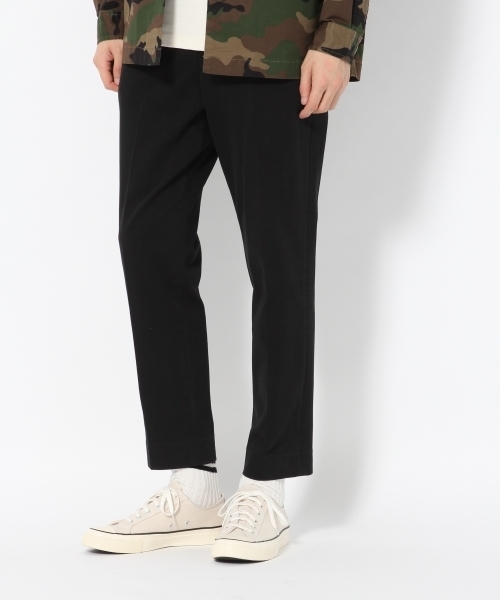 綺麗なシルエットと動きやすさを兼ね備えた一本★縦にも横にも伸びる伸縮性のある2WAYストレッチ素材を使用したトラウザーパンツ。穿きやすさを追求したニット素材を使用し、柔らかくかつ動きやすさも兼ね備えた1本に仕上がっております。足先に向かい細くなるテーパードシルエットはすっきりと綺麗なラインでONOFFどちらにも活躍します。