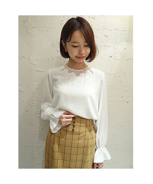 衿ぐりにカットワークが施されたヴィンテージライクなブラウス。 同色のローズの刺繍やスカラップの衿ぐりなど、こだわりがたっぷり詰まったデザインです。 とろみのある素材感とややゆったりとしたサイズ感がヴィンテージムードを盛り上げるポイント。 取り入れやすいブラック・ホワイトと、コーディネートの主役になりそうなマスタードカラーをご用意しました。 MATERIAL: モデル身長: 158cm 本体 ポリエステル100% 刺繍上糸 レーヨン100% 刺繍下糸 ポリエステル100% made in China サイズ着丈胸囲 肩幅 袖丈 Free 57cm103.5cm34.5cm58cm 【ご注文確定前に必ずご確認ください】 いつもF i.n.tをご愛顧頂きありがとうございます。 STORESの在庫掲載については、F i.n.t代官山店と在庫を共有しているため、在庫更新のタイミングにより在庫切れの場合やお届けまでお時間を頂戴してしまう可能性がございます。 商品を他店舗よりお取り寄せの場合には、通常よりお届けまでにお時間がかかる場合がございますので、恐れ入りますが予めご了承ください。