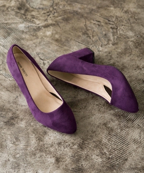 履き心地の良さを追求した1足! グローバルワーク定番のパンプス。 ベーシックデザインになのでスタイリングしやすく、太ヒールなので安定感があり高さのあるヒールでも歩きやすさがポイントのアイテム。 オリジナルのインソールはクッション性もさらにアップデートし、より履き心地を追及した1足に。 今年は抗菌・防臭機能をつけ、さらに機能性の高い一足に仕上げています。 表面感のある素材感は一足早くスタイリングに季節感をプラスするのにもおすすめです。