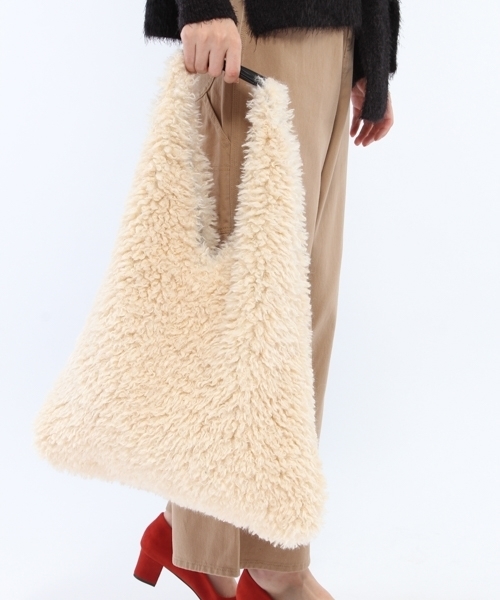 旬のラムファーを使用した、トートバッグ 今シーズンのトレンドであるファー素材。 中でも毛足が長く、ボリュームのあるラムファーが大注目です。 注目のトライアングル型は、肩にフィットするシルエットで持ちやすさもバツグン。 たっぷり入る大容量サイズですが、素材の特性上軽い仕上がりです。