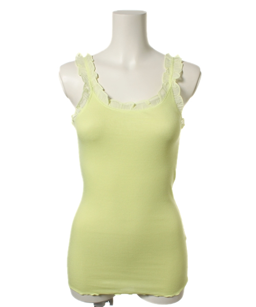 【one after another NICE CLAUP】(ワンアフターアナザーナイスクラップ)伸縮性のあるテレコ素材で仕立てられた、着心地が良いタンクトップ。タイトなサイズ感でコーデの邪魔にならないのがポイント。フリルが施されたストラップで、ガーリーな雰囲気をプラスできます。背中がクロスになって後ろ姿も決まる、ヘビロテキャミソール。ショップへお問い合わせの際は下記品番をお伝え下さい。 NO.