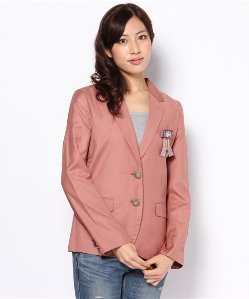 毎シーズン定番のベーシックなテーラードジャケット。今回の裏地は、キュートなドットリボン柄。セットアップで着れるプリーツスカートもご用意しました。 model:H168 B80 W59 H85 着用サイズ:MEDIUM