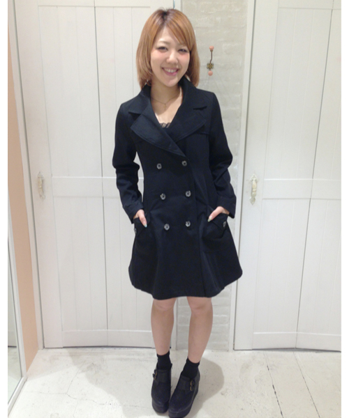 【one after another NICE CLAUP】(ワンアフターアナザーナイスクラップ) 大き目の襟と、少し裾が広がった形が可愛いトレンチコート。 ヒップが隠れる着丈で、スカートにもパンツにもグッドバランスです。 いろいろなボトムを楽しみたい人にも最適な一着。 ショップへお問い合わせの際は下記品番をお伝え下さい。 NO.181200140 model:H168 B80 W58 H86 着用サイズ:FREE