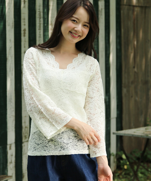 華やかな総レースデザインで、上品エレガントな印象に仕上げたプルオーバー。ふんわりとしたフレアなスリーブもフェミニンな表情をプラスし、さりげない華奢見せ効果も◎デニムと合わせたカジュアルスタイルも、レディな着こなしに演出してくれるアイテムです。