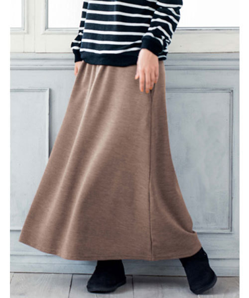 どんなトップスとも合わせやすいシンプルなマキシスカート。 こちらも着心地良いカットソー素材に、お腹まわりのリブ切替でリラックスムード。 リラックス感がありながらも女らしさを演出できる、シンプルなマキシスカート。 ◎ ストレッチ ● ウエスト総ゴム使い ● ポケットあり 洗濯:洗濯機使用可