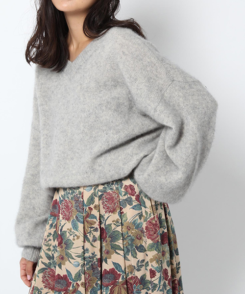 【 毛玉の出来にくい、フェレットニット 】フェレットの毛を刈り取って毛100%でお造りしたニット今年はVネックで登場!毎年購入されている方もいる好評のアイテムです。人気の理由は・毛玉のできにくさ・ふわふわとした触り心地・とびぬけた保温性希少価値の高いフェレットウールを、ふんだんに使っております。アンゴラやモヘヤのニットに比べると毛飛びが少ないのもお客様に喜ばれています。ふわふわとした触り心地で、空気を含むフェレットニット保温性もよく冬場もこのニットにダウンを羽織れば超えられてしまいます。「暖かいニット=重い」を覆す、ビックリするほどの【 軽さ 】も特徴の1つです。シンプルにデニムと合わせるだけでも上品さが際立ちます。今年は裾のリブが長いので、ウエスト位置を高くしてトップスを短く見せたりウエスト位置を低くしてBigシルエットにしたり、お好みで調節できます。