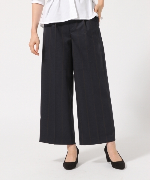 'CARREMAN社'生地を使った上質パンツフランスの大手素材メーカー'CARREMAN社'の生地を使用したパンツは、しなやかかつ上質な質感で肌触りも良くしわになりにくく、またほこりが付きにくい特徴を持った1点。さらりとした肌触りの良い着心地が着用後も続き、その穿き心地は一度お試しいただきたいおすすめのアイテム。 もも部分にタックを施し、裾に向けてゆとりのある広すぎないワイドシルエットはスタイリングのしやすさもポイントです。それぞれ柄が入っているので、スタイリングのさりげないポイント使いにも♪