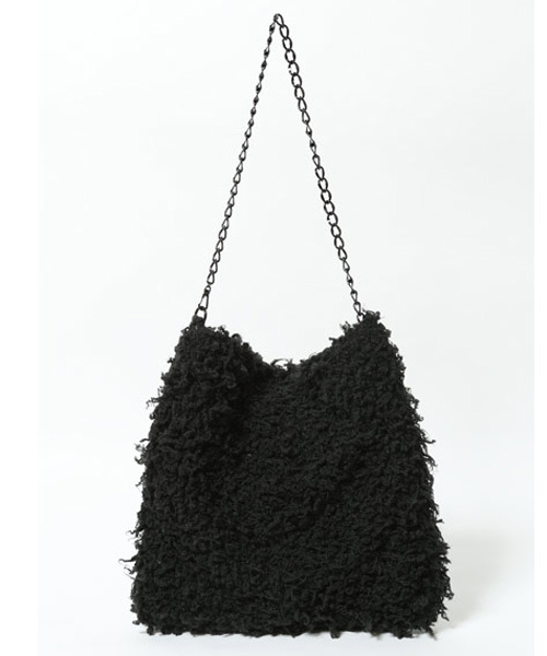 i(アイ) もこもことしたフェイクファーのボリュームが可愛いバッグです。華奢なチェーン使いでバランスコーディネイトにはまります。 シンプルなコーディネイトに加えてみて下さい☆