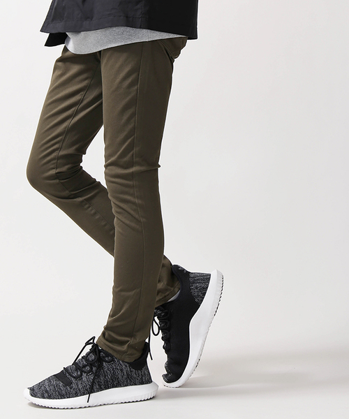 【FINE BOYS 10月号掲載商品】 生地にストレッチ素材を使用した柔らかな穿き心地のスキニーパンツ。裾に向けてゆるやかにシェイプをかける事により、脚のラインにフィットするテーパードシルエットが魅力。 程よく光沢のある生地感が、スタイリッシュな雰囲気を着こなしにプラスします。O脚状になったフォルムが穿いて頂いた際、腰から下のレッグラインを綺麗に見せてくれ、プレーンなパンツとは一線を隔した仕上がり。 幅広い着こなしに対応してくれる、スタンダードな4色展開でご用意しました。定番のデザインながら、細部や加工にこだわり、年をまたいで長くご愛用頂けるひと品です。 <サークルストレッチとは??> ■ベーシックなパンツ素材に⾒えながら、縦横斜め360°(サークル状)によく伸びよく戻る新開発素材 ■通常のストレッチ素材が20〜30%の伸張率であるのに対し、サークルストレッチは約80%、回復率は通常70〜80%に対し約90%を誇ります。 ■その理由は、カットソーと同じ丸編みで作っているため。従来のカットソー素材は屈伸の多い膝関節部分が伸びてしまう"抜け"の問題がありましたが糸番⼿や編みの設計を工夫し、高密度に編み上げることでそういった課題を克服しました。 ■従来のカットソー素材のパンツではあり得なかった、織物のようなハリとコシを実現しているためベーシックなパンツとしてご愛⽤頂けます。 ■ただ⾒た目はベーシックでありながら、丸編みならではの包み込むようなフィット感・着⽤した際の圧倒的な軽さを実現しています。