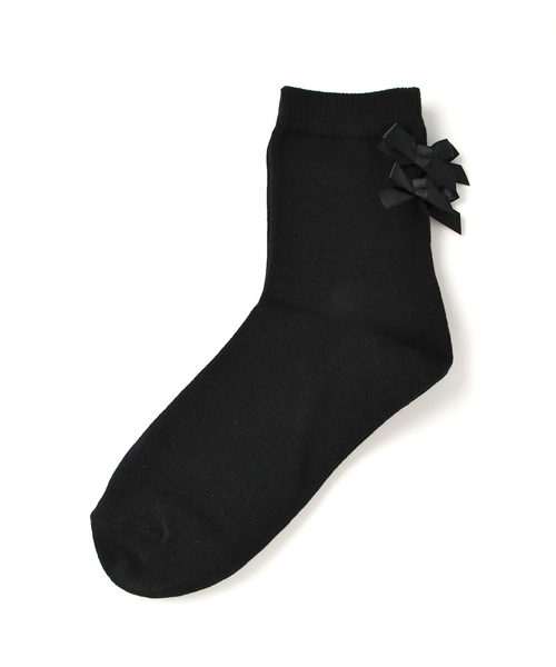 リボンをあしらったソックス。柔らかく脚のラインにフィットし、ストレスなく快適に着用頂けます。 クウォーター丈の程よい長さのソックスはパンプスやフラットシューズと合わせたり、ロ-ルアップしてチラリと覗かせる様な着こなしもオススメ。 お値段も手頃ですので、ご自身用は勿論、プレゼントにもオススメです。