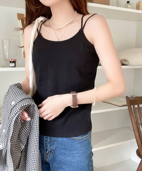 【お気に入り30,000人突破!】 バッククロスデザインで360℃どこから見てもお洒落見え。 着回し力抜群なダブルストラップキャミソール。 カップ付きで着心地抜群なキャミソールはサラッと涼しく春夏に重宝する1枚。 さりげないデザインで着るだけで抜け感が出せちゃいます♪ 映えるカラーバリエーションで大人カジュアルコーデのポイントに◎ ■point ・カップ付きが嬉しい ・トレンド ・お洒落見え ■detail 映えるカラーでお洒落見え間違いなしのWストラップキャミソール。 バックはクロスデザインになっているので、360℃どこから見てもかわいい1枚。 華奢見えする美シルエットと程よいフィット感、 カップ付きでストレスフリーな着心地もポイントです。 着回し力抜群なので1枚でもインナーとしても大活躍間違いなし◎ ■fabric 着心地柔らかな棉混リブ素材。 …………………… 透け感:なし(淡色あり) 厚さ:普通 伸縮性:あり ポケット:なし 洗濯方法:洗濯機可 …………………… ※カップ取り外し可能 ※ストラップ調節不可(伸縮性あり) ※詳しいお手入れ方法は商品タグをご参照ください。 ■coordinate カップ付きで綺麗に着れるのでトップスとして1枚で着てもインナーとしても大活躍! ハイウエストデニムやスウェット合わせでカジュアルにまとめてもよし、 マーメイドスカートやレース素材のフレアパンツと合わせてレディライクなスタイルにまとめても◎ 肌見せに抵抗がある方はオーバーサイズのストライプシャツや シアー感のある涼しげなシャツをサラッと羽織るのがおすすめです。 バックのクロスデザインがポイントなので羽織りは襟を抜くと360℃どこから見てもお洒落見えしますよ♪ 着るだけで映えるイエローやピンクはコーデのアクセントに、 ベーシックカラーにはカラーパンツや明るいカラーの小物合わせで遊ぶのもアリ◎ ご覧のモニター環境により、画像の色味と多少異なる場合がございます。 ★《お気に入り登録》でお得な情報がいっぱい★ ・「商品のお気に入り登録」で再入荷通知や、ラストの通知、セール通知も受け取ることができます。 ・「ブランドのお気に入り登録」で新商品や再入荷など、お得な情報を受け取ることができます!