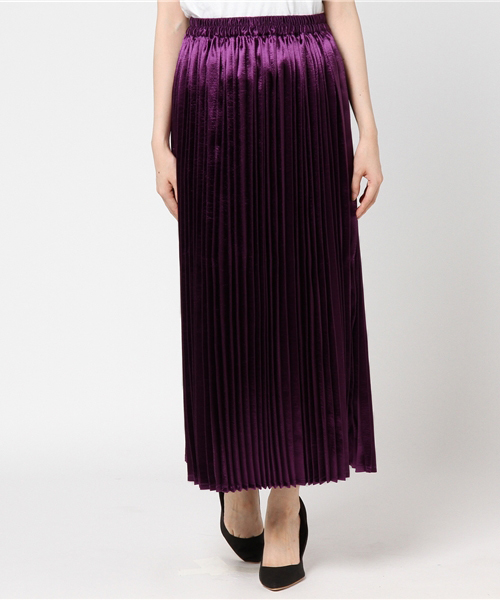 光沢のあるサテン素材で仕上げたWCのロングスカート。定番のシルエットながら、プリーツデザインが手軽に着こなしのアクセントになります。 ストンとした落ち感が綺麗で、スタイルよく見えるラインにこだわりました。バックウエストはゴム仕様ですので、リラックスして快適に着用頂けます。 今季はショート丈トップスと合わせたり、ベレー帽やスニーカーなど、小物で遊びを効かせたコーディネートもオススメです。
