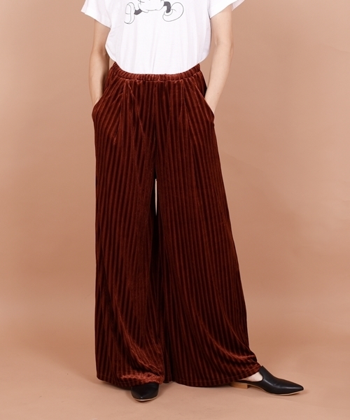 季節感たっぷりのベロア素材のパンツです。ぽこぽことした素材感と光沢感が女性らしさをより引き立たせてくれます。厚すぎない素材なので秋口から冬まで活躍してくれる一着♪ゆったりとしたシルエットと、ウエストがゴムになっているため、ストレスフリーな着心地も魅力のポイントです。 【SHIPS BLUESTORE/シップス ブルーストア】 「FOREVER YOUTH」をテーマに、新たに提案する「NEW BASIC」。 自身のスタイルを創る基盤となる“愛着のある物”を提案します。 ※素材特性上、毛抜け、毛羽の乱れが生じる場合がありますので摩擦にご注意ください。 ※着用や洗濯で徐々に毛が寝てしまい、元に戻らない場合があります。 ※末永く愛用頂く為に、アテンションタグ・洗濯ネームを必ずご確認の上、着用又はお取り扱い下さい。