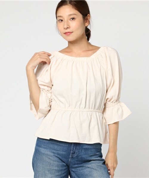 ◆マルチに使えるペプラムブラウス◆ 凹凸感ある生地を使用したペプラム型のブラウスはオフショルダーにしたり、前を開けて羽織としてマルチに使えるトップス。 秋に向けての着こなしにピッタリのアイテムです。
