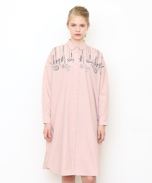 ドロップショルダーで、ゆったりとしたシルエットのシャツワンピース。すとんと1枚できるのはもちろん、パンツスタイルに羽織ったり色々なコーディネートが楽しめます。吊るされて干されたドライフラワー。花へ長く伸びる幾筋ものラインが印象的。カラーリングを黒の単色にして、締まりのあるデザインに仕上げた所がポイントです。 [ご使用に関する注意] ●この商品は染料の特性上、雨や汗などによる水濡れ、摩擦が加わる状況での使用により、色落ちや色移りする可能性がございますので、十分ご注意の上ご使用下さい。●洗濯の際は、他の衣類と分けて洗って下さい。また、洗濯後は時間を置かず、形を整え陰干しして下さい。※商品画像と実物では多少色味に違いがある場合がございますので予めご了承下さい。※発売日や販売状況は店舗によって異なります。