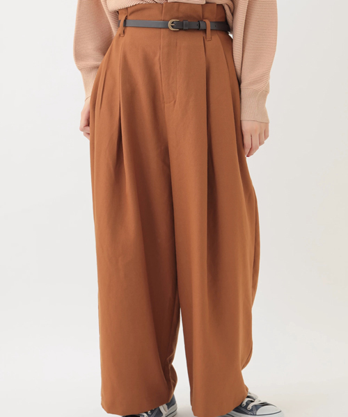 スカートライクなボリュームシルエットで仕上げた、モダンフェミニンなラッピングパンツ。タックワークがつくり出す奥行きのあるシルエットが、気になるレッグラインをカバーしてくれる嬉しい効果も◎さらに、付属の細ベルトで、ウエスト周りも品良くメリハリ付けできます。