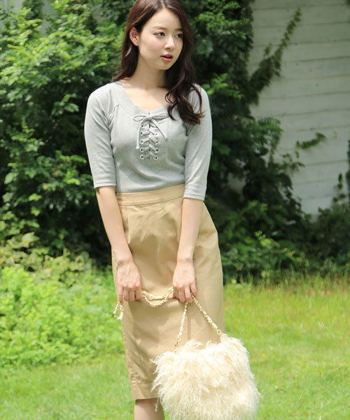 バイオウォッシュ加工でヴィンテージ感を出した、綿ツイル素材のミリタリーテイストなタイトスカート。 ボディラインに沿ったスッキリシルエット+ミディ丈のデザインで、カジュアルになり過ぎず上品な印象でスタイリングできます。 ウエストは後ろがゴム仕様なので脱着がしやすく、程よいフィット感で穿けるのも◎ ヌケ衿シャツやフェミニンなトップスをINした、大人レディな着こなしがおすすめです。