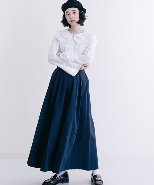 大人かわいいスタイリングに仕上がるタックフレアスカート。ボリュームのあるフレアが様々な表情を見せてくれます。ウエスト周りにタックをあしらった落ち感も魅力。ハイウエスト×ロング丈で足長効果も。ウエストの後ろ部分はゴムなのでトップスインスタイルも決まります。トレンドのサッシュベルトをして小物で差をつけるのもオススメです。