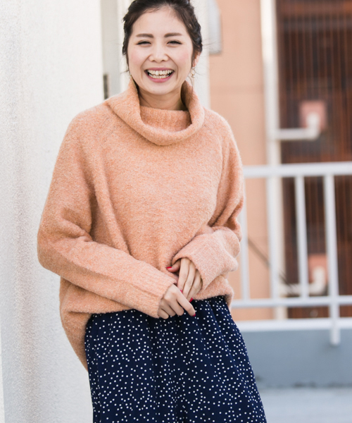 糸が杢になっているブークレ糸を使用したタートルネックニット。 独特のもこもことした生地感は着ててやみつきになる柔らかさ。毛玉やしわが出来にくいのも嬉しいポイントです。 ※伸縮性あり