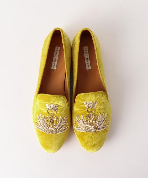 しっとりとしたベルベットの風合いが上品なオペラシューズ。 <ne Quittez pas>らしいエンブレムの刺繍がクラシカルな雰囲気を演出します。 先細りさせつつ、丸みをもたせたフォルムは、大人のリラックスした足元にぴったり。 カジュアルスタイルから、きれいめコーディネートまで幅広く合わせられるのも魅力です。 いつもの着こなしを旬のイメージに仕上げてくれる、オススメの一足。 <ne Quittez pas> <ne Quittez pas(ヌキテパ)>は英訳するとstay on line。 “自分のスタイルを崩さないで”というブランドのメッセージが込められており、 伝統的な製法やエスニックなファブリックにヨーロッパのエスプリを加えたストールやバッグを展開しています。 店舗へお問い合わせの際は、全国のBEAUTY & YOUTH 各店舗まで下記の品名/品番をお申し付け下さい。 品名:FC N/Q/P VVT EMBOS OPERA 品番:1831-599-5112