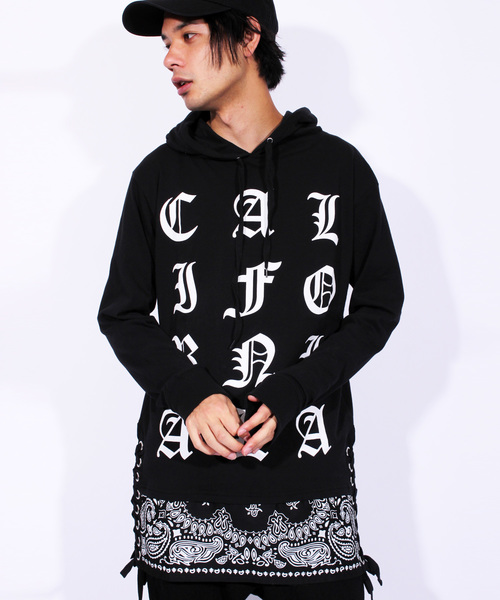ストリート系 アメカジ系 に大人気の ペイズリー 切り替え ロゴ サイド編込み ロング丈 プルオーバー 長袖 パーカー メンズ のご紹介です。 今期トレンドの ペイズリー柄 ロゴ プリント 切替え サイド 編込み プルオーバーパーカー 長袖パーカー が入荷いたしました。前身に大きくデザインされた 英字 ロゴプリント や 切替 デザイン等存在感あるカッコ良い逸品に仕上がりました。大流行中の長めの丈が タテのラインを強調し、スタイルよく見せてくれる効果も抜群です。 裾両サイドに 編み込み が施された珍しいデザインになっており、細部にまでこだわった逸品です。春 秋 には一枚で着てもいいくらいの程良い薄手のカットソー素材なので、冬にはアウターのインナーに着てもおすすめです。 今期大人気 ストリート系 ロゴ 切換え 長袖 プルパーカー パーカ をお探しの方は、コチラがオススメです。 重さ 約370g 素材感 伸縮性…あまり無い 透け感…ややある 生地の厚み…かなり薄い 着心地…かなりルーズ 肌触り…やや柔らかい