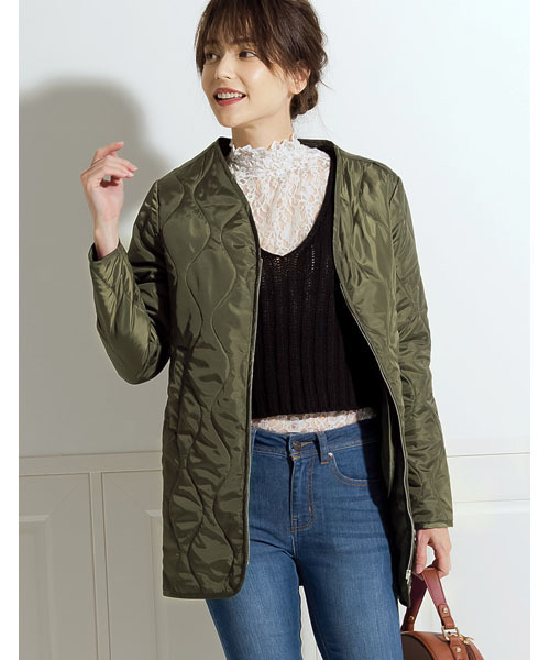 ライナー風に仕上げた最旬ライトアウター コーデに新鮮さをプラスするライナージャケット 【デザイン】 ライナー風の中綿入りキルトデザインが新鮮なジャケット。 すっきりしたノーカラーで、カジュアルだけど女性らしいルックスに仕上げました。 着心地の良い軽さと、気負わずさっと羽織れるお手軽さも魅力です。 【コーディネート】 定番のデニムコーデはもちろん、 今年はあえてクラシカルなレースアイテムをインナーするのもおすすめです。 真冬にはオーバーサイズコートのインナーに、 防寒アイテムとしても活躍します。 【素材・着用感】 軽くて温かいナイロン素材。中綿入り。 ■モデル着用写真は撮影環境により、 多少実際のカラーと異なる場合がございます。 お気に入りショップにご登録いただきますと、 ショップニュースを、いち早くお届け致します。