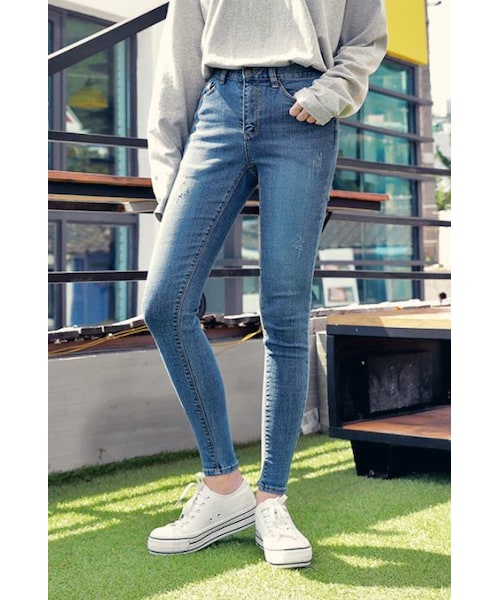 脚を引き締めて美脚ラインを作る魔法のパンツ!ウォッシングのかかったデニムカラーで、デイリー使いにピッタリ★レッグラインを引き締めてくれるだけでなく、伸縮性に優れたストレッチ素材で、アクティブな場面でも問題ナシ◎パンツはやっぱりHOTPINGの魔法パンツ♡