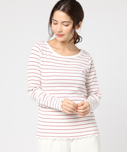 袖口と裾にあしらったメロウフリルが愛らしさをプラスする、大人レディなプルオーバー。ボディに優しくフィットするテレコ地で着心地も良く、スマートにスタイリング出来るのも嬉しいポイント◎1枚で着るのはもちろん、レイヤードコーデのインナーとしてなど、幅広いスタイリングが楽しめるアイテムです。
