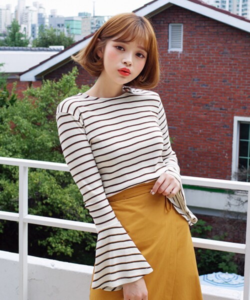 ベルスリーブで女の子らしく仕上がったボーダーTシャツ!程よいフィット感でデイリーに着やすいデザインが自慢♪ハイウエストのパンツやタイトスカートなどスマートなシルエットのボトムと合わせればスリーブラインを活かしたトレンディなルックが楽しめます♡ ※WEARに記載してある金額と、DHOLIC通販サイトに記載してある金額にシステム都合上、稀に誤差が生じます。正しい金額はDHOLIC通販サイトに記載された金額です。