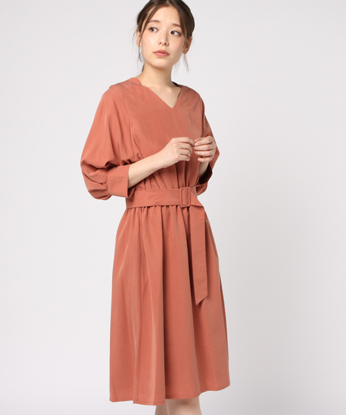 ◆ちょっと背伸びしたい...大人の女性のクラシカルワンピース◆秋らしいモダール加工でしっとりとした手触りのクラシカルなワンピースです。ボリューム袖とバックル付ベルトで今年らしいヴィンテージライクなデザインです。深みのあるカラーと高級感のある素材でアーバンな大人の女性の印象になります♪ライダースジャケトとブラック系の小物で上品だけれど、エッジの効いたスタイルに仕上げるのがおすすめです。