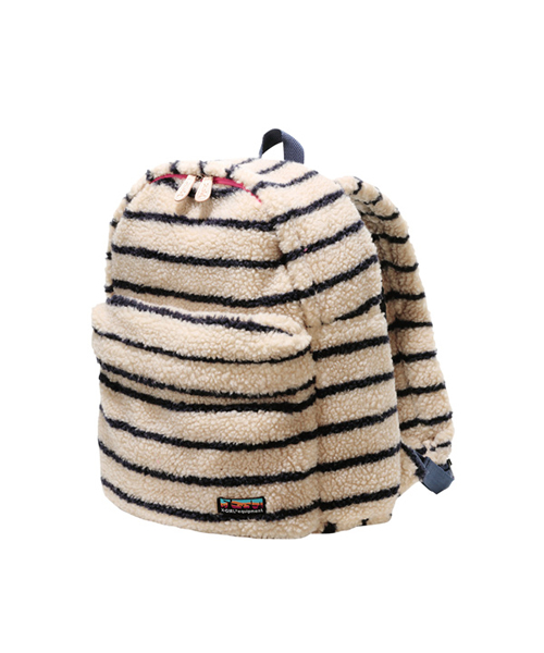ボアフリースとポリエステル生地を使った、アウトドア気分満点のバックパック。