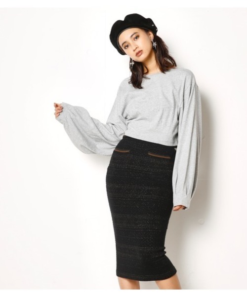 袖にタックでボリュームをもたせたクロップド丈のロンT。ハイウェストのボトムスに合う着丈バランス。ベーシックに使いやすいカラー展開。