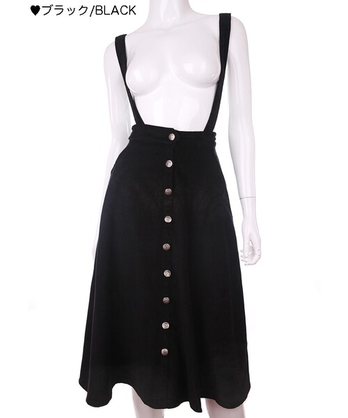 ♡Bobon21 2017Autumn New Collection♡ アンティークフェミニンなミモレスカート 近年トレンドのコーデュロイ生地を使用し レトロ感のあふれるミモレ丈に仕上げました アンティーク感のあるゴールドボタン サスペンダーはコーデによって取外しOK 定番カラーのブラック&ボルドーに加え アンティークなピンクでところん甘口が旬