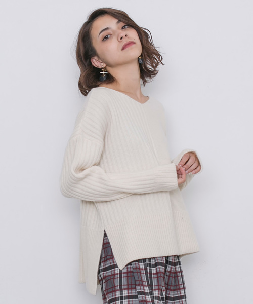 ◆”ややゆるめ”が合言葉。程よいサイズ感がたまらないパターンアレンジニット◆【Fabric】ざっくりとした網目に、アレンジを効かせてシンプル可愛いを実現。ほどよいゆるさがリラックス感漂うVネック ニット。STUDIOUSで毎年人気の糸で編んでいるので、着心地は抜群。そして暖かさも兼ね備えております。後ろ身頃はゆとりのあるふくらみ感で立体的な仕上がりになっており、腰回りをしっかりカバーしてくれます。【Coordinate】さらっと一枚着てもお洒落にコーディネートが完成しますが、今年流行りのサッシュベルトを巻けばディテールの変化も楽しめます。パンツスタイルはもちろんですが、長めのスカートで合わせてレトロな着こなしもオススメです。
