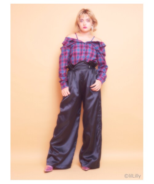 光沢感のあるマテリアル×ワイドフォルムで、トレンドライクに仕上げたパンツ。MA-1を彷彿とさせる配色裏地デザインがGOOD。ウエストのドロストコードからなるフリルで、トップスインスタイルもバッチリキマります。※商品画像はサンプルのため、色味やサイズ等の仕様に変更がある場合がございますので、予めご了承ください。