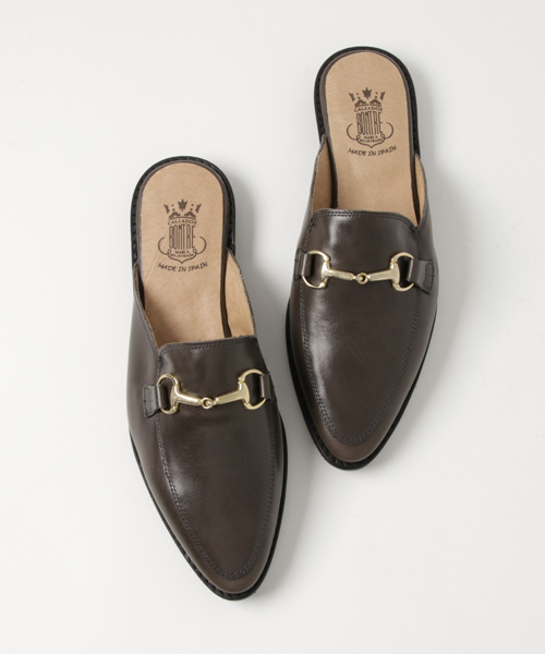 スペイン発「BONTRE(ボントレ)」のミュールです。クラシカルなビット付きローファーをベースに、あえてかかとをなくしたスリッパ型で旬のリラックスムードを表現。 素足ではもちろん、靴下やタイツを合わせれば1年中履くことができます。