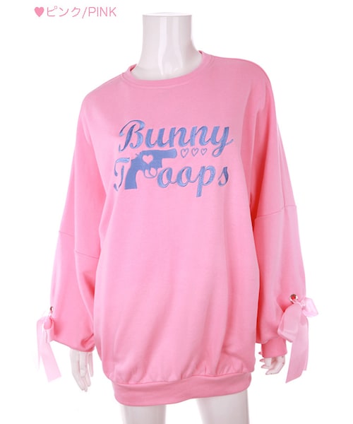♡Bobon21 2017Autumn New Collection♡ ビッグシルエットのスウェットトップス キュートなぷっくり袖が今年らしいデザイン 袖には大きなサテンリボンをつけました ワンピースで着るには大きいサイズがオススメ ピンクにはブルーの刺繍とピンクのリボン 白にはブルーの刺繍とリボンの2色展開