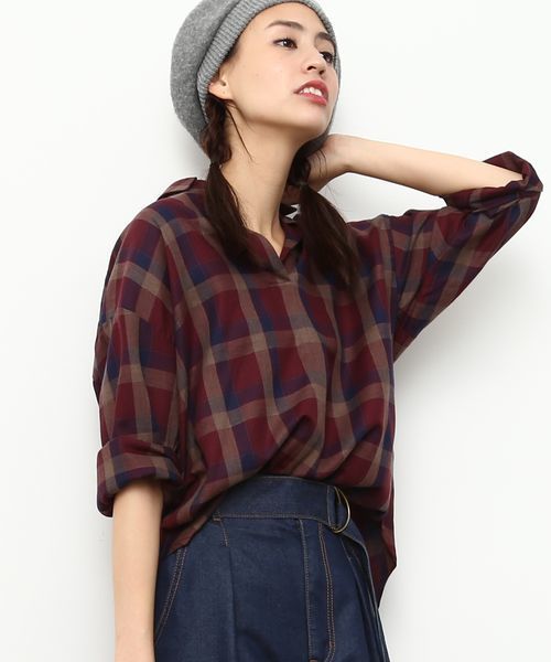 大人カジュアルにピッタリのシックな配色チェック。秋冬コーデのアクセントとしてもおすすめ。胸元の程よいヌケ感がこなれた雰囲気をかもし出してくれるスキッパーシャツ。 秋冬ムードを感じるチェック柄で、コーデのアクセントとしても映える1枚に仕上げました。 ドロップショルダーのユル感に、フロントインしやすい後ろ長めの丈がまさに今旬シルエット。 袖をロールアップで軽やかにアレンジも。 カジュアルに合わせるのはもちろん、きれいめボトムとも好相性です。