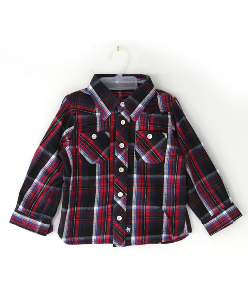 ☆FALL&WINTERカタログ掲載☆オリジナルチェック柄のネル素材シャツ。背中のアーチ型のプリントがインパンクト大。気持ちのよい起毛素材なのでトップスとして一枚でも、羽織ものとしても◎。