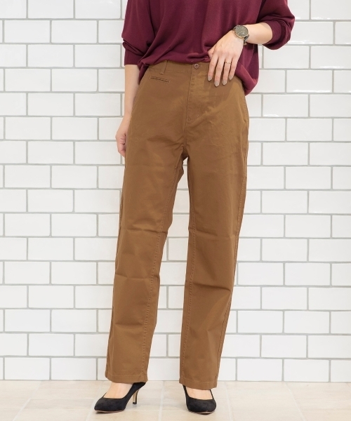 オンオフどちらにも重宝する、シンプルでベーシックな大人の抜け感あるチノパンが登場しました♪ しっかりとした生地から、やや太めのストレートシルエットでまとまりのあるスタイリッシュな印象をあたえてくれる一枚◎ スニーカーに合わせても、ヒールに合わせてもカジュアルからキレイめまでどんなスタイルにも使える優秀アイテムです。