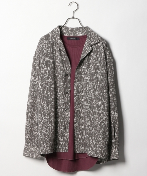 目を惹く幾何学柄が特徴のシャツです。 首元はオープンカラー、身幅・肩幅を大きくとったビッグシルエットと、今年らしい表情に仕上げました。 適度なシャリ感のあるポリエステル素材を使用しており、独特の落ち感と絶妙なハリ感がポイント。 Sサイズからご用意しているので、小柄な方はもちろん、女性にもオススメです。 ※光の当たり具合で、商品と画像の色に若干差がある可能性がございます。ご了承ください。 ※撮影に使用しているインナーは付属しません。