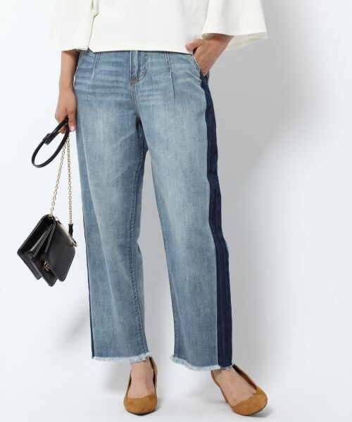 ハイウエストの断ち切り感が今年らしいデニムワイドパンツ。すとんときれいに落ちる大人なワイドシルエットが足をきれいにみせてくれます。足元に明るい色のパンプスなど合わせてレディライクに着こなしても素敵ですね♪秋が深まる頃にはニットやレザーを合わせても◎
