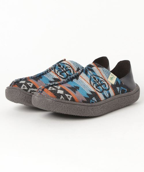 真ん中のステッチがアクセントになった、フォークロアテイストなスリッポンシューズ。すっぽりと履きやすく、カジュアルコーデやアウトドアコーデにぴったりなデザインです◎ ※こちらの商品は1点1点職人による手作りとなります。その為、生地の取り方により柄の配置や形・色合いなど若干異なる場合がございます。(画像は一例です。)あらかじめご了承ください。※サイズには個人差がございます。あくまで目安にお考えくださいませ。 Amina Collection Co.,LTD.