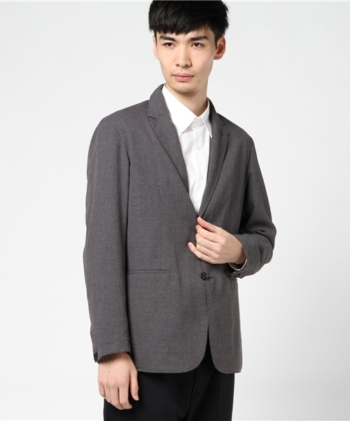◆GLOSTER◆シャリ感のある素材が特徴の2Bジャケット。一見普通のジャケットのようですが胸ポケットを省略し腰ポケットを玉縁仕様にするなど独特のデザインになっています。落着いた雰囲気は大人も着用したくなる新提案のカジュアルアイテムです。