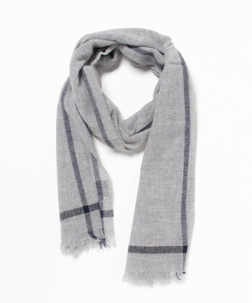 ウール素材を使用した薄手の布帛ストール。ストールの縦横サイドにはコントラストあるラインをはしらせています。(サイズ:180cm×50cm)