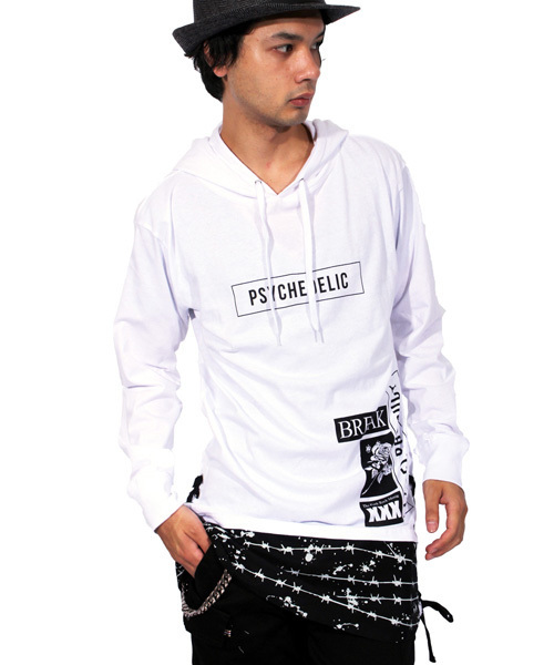■ストリート系 に大人気!『 ロゴ プルオーバー パーカー』ストリート系 アメカジ系 に大人気の ロゴプリント 有刺鉄線 切り替え サイド編込み ロング丈 プルオーバー 長袖 パーカー メンズ のご紹介です。今期トレンドの ロゴ プリント 切替え サイド 編込み プルオーバーパーカー 長袖パーカー が入荷いたしました。 ■細身のスキニーパンツにボリュームのあるトップスが相性◎前身にデザインされた 英字 ロゴプリント や 切替 デザイン等存在感あるカッコ良い逸品に仕上がりました。大流行中の長めの丈が タテのラインを強調し、スタイルよく見せてくれる効果も抜群です。■これからの季節にアウターのインナーにもおすすめ!裾両サイドに 編み込み が施された珍しいデザインになっており、細部にまでこだわった逸品です。春 秋 には1枚で着てもいいくらいの程良い薄手の カットソー 素材で、冬にはアウターのインナーに着てもおすすめです。 今期大人気 ストリート系 ロング丈パーカー 異素材 切換え プルパーカー パーカ をお探しの方は、コチラがオススメです。重さ 約362g 素材感 伸縮性…あまり無い 透け感…多少ある 生地の厚み…やや薄い 着心地…かなりルーズ 肌触り…やや柔らかい